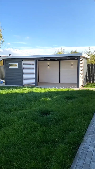 | Название модели: | Навес для автомобилей с хозблоком №157 |